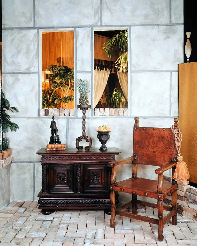 Every year at the Miami Beach Home and Design show, six of the best local interior designers are selected to design a room for a local TV news anchor. We got lucky that year and were chosen to design the room for the wildly vivacious then Deco Drive Host Jessica Aguirre. We had to interview her and ask her what she loved and what her inspiration was. She told us of her recent honeymoon in Italy and of the old castle-like homes she saw there.